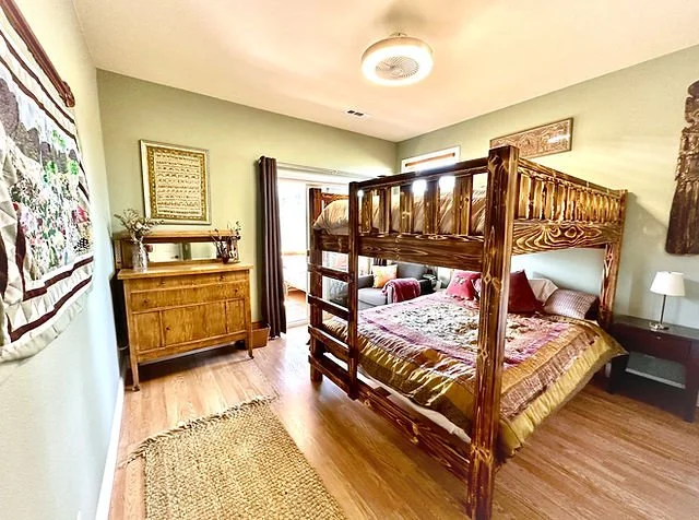 These rooms carry the spirit of sisterhood. Sleep alongside 1–2 others in cozy twin or queen beds or bunks, creating late-night whispers and shared laughter. A beautiful option if you want companionship and connection while honoring your own bed as sacred space.